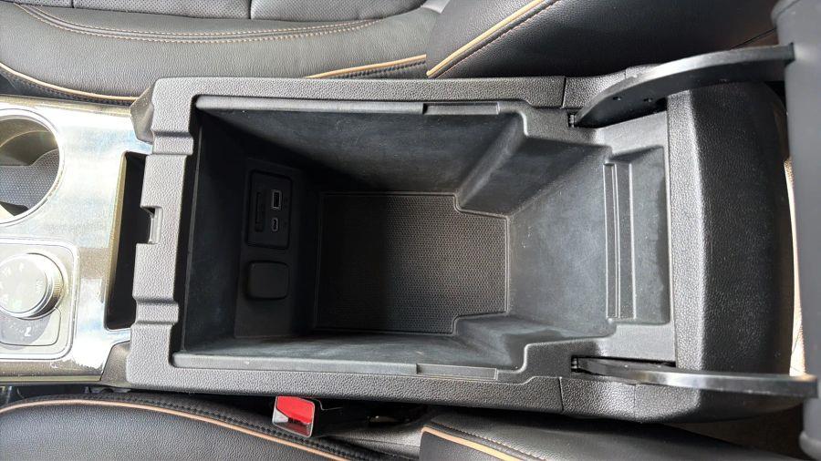 - USB data ports, 2, one type-A and one type-C includes SD Card Reader, auxiliary input jack, located within front center storage bin